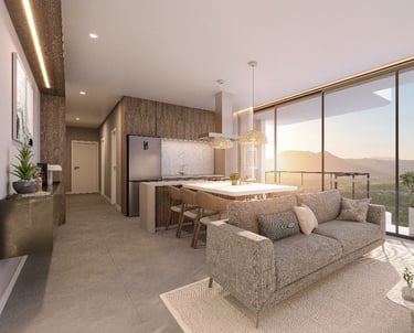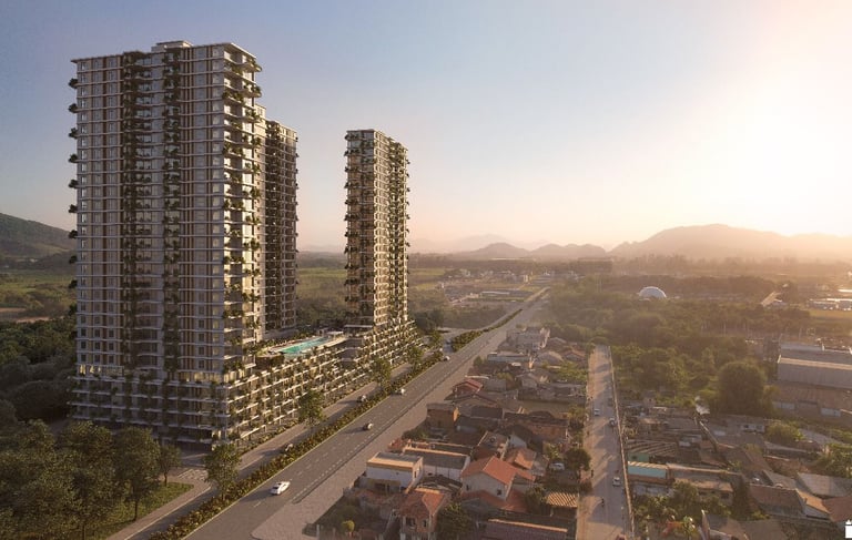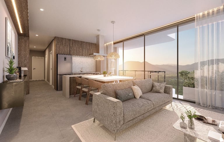 Apartamentos amplos, iluminados e integrados ao verde e ao mar.